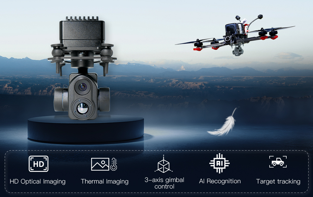 Weighing only 133g, the Recon Eye-K3T is designed to empower lightweight, flexible and intelligent drone applications. Equipped with a wide-angle lens, 3-axis gimbal, AI tracking and dual sensors — an EO sensor for ultra-clear vision, and an IR sensor for smart thermal imaging — this gimbal excels at providing clear, detailed and real-time image transmission, delivering robust and reliable support for day-and-night security monitoring and disaster responses.