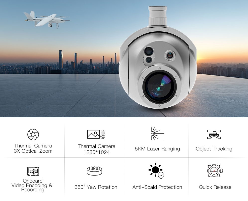 Different from most other gimbals, the Sky Eye-3HT-MU excels in thermal imaging — not only with its UHD 1280x1024 resolution, but also through its 3X optical and 8X digital zoom, capturing sharp and clear visuals even at night. Combined with its 2-axis gimbal, 4K wide-angle camera, built-in LRF, and AI tracking, the Sky Eye-3HT-MU delivers exceptional visual performance and elevates the nighttime drone surveillance to a new level.