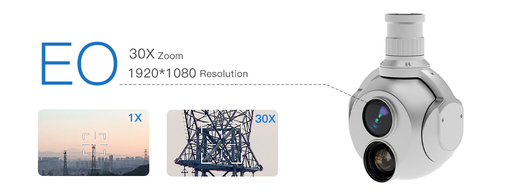 As a 2-axis gimbal designed for drones, the Storm Eye-30IE-U stands out with its ultra-light weight of 890g, as well as comprehensive monitoring functions — 1080P resolution with 30X optical zoom for long-range capture, a thermal imager for night missions, and AI tracking for real-time reconnaissance — delivering efficient data support for aerial missions like long-distance delivery, disaster responses or perimeter surveillance.