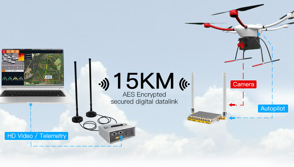 The YANGDA Videopass-N15 is a long-range, point-to-point, point-to-multipoint broadband video and data transmission module, and its transmission range can reach up to max 15KM. Adopting key technologies such as OFDM(Orthogonal Frequency Division Multiplexing), MCS adaptive modulation and coding mechanism, the long-range digital video and data link is developed based on the LTE wireless communication standard and does not depend on the operator's base station.