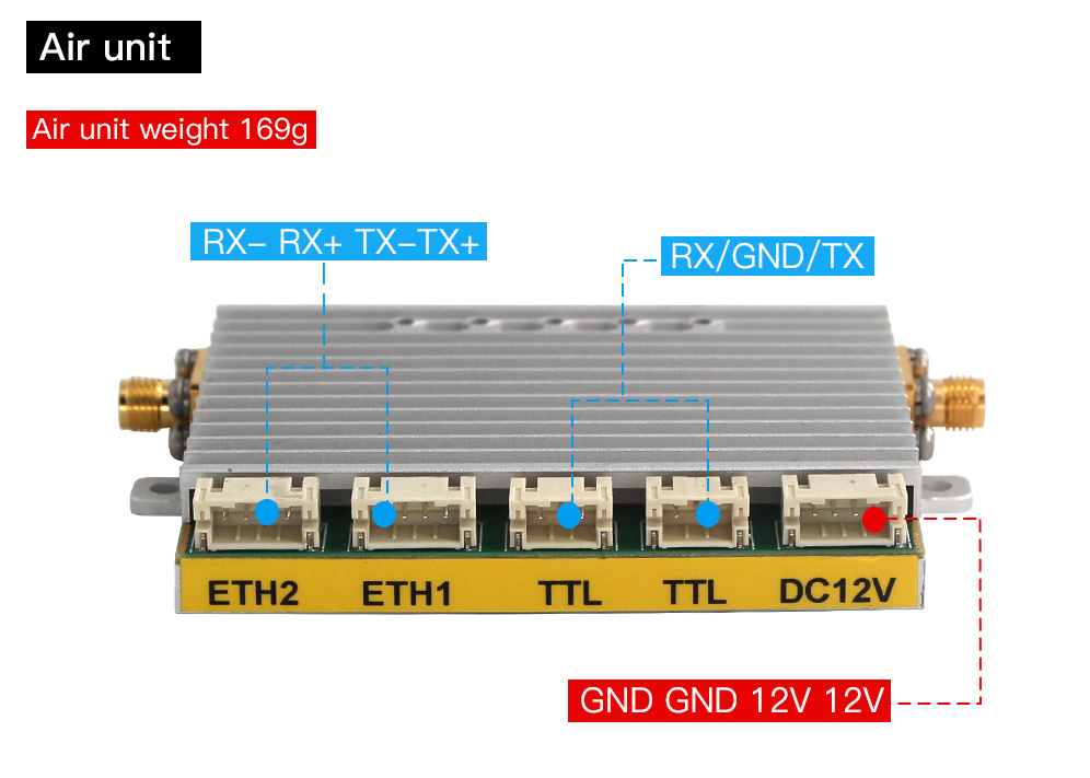 | Air unit | 2 x ETH, 1 x UART, 2 x SMA, 1 x Power Input |