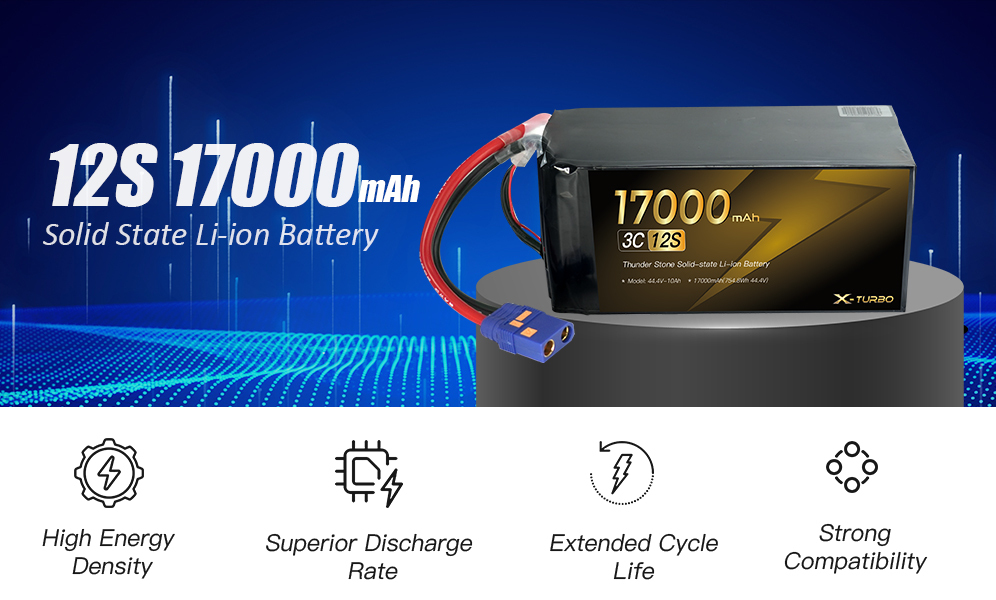 Configured with a 12S cell count, 17000mAh capacity, and high energy density, the XTurbo battery offers a lightweight yet durable power solution for drone operations—particularly suited for long-range aerial missions. With an extended cycle life of up to 800 cycles, it ensures not just a single-use advantage but a lasting investment in reliable and consistent performance.