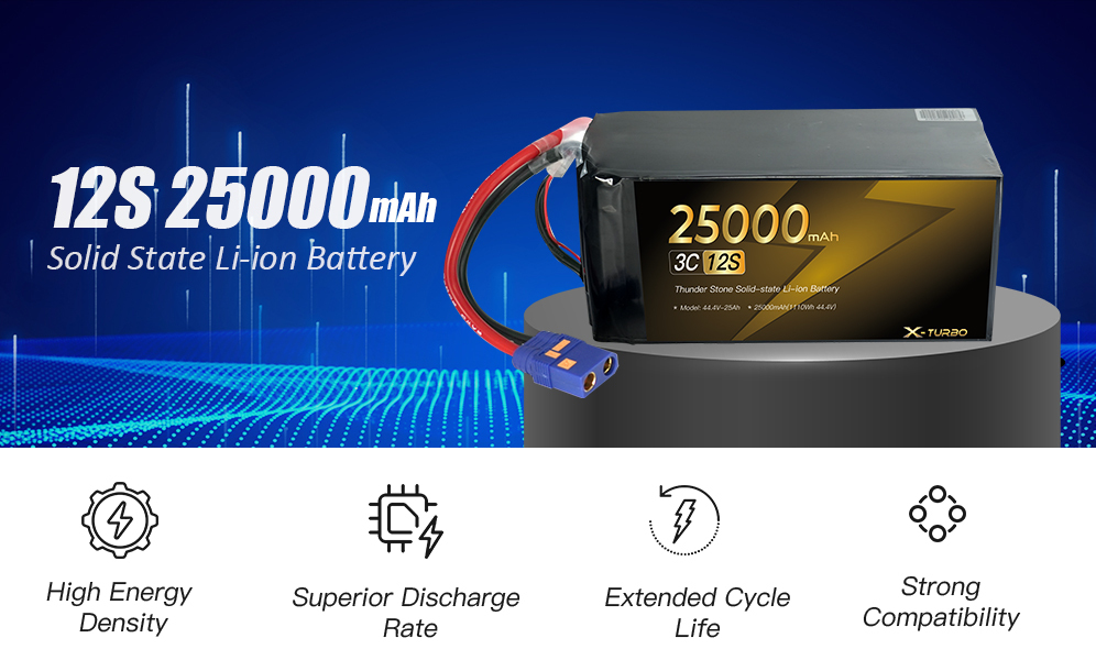 Configured with a 12S cell count, 25000mAh capacity, and high energy density, the XTurbo battery offers a lightweight yet durable power solution for drone operations—particularly suited for long-range aerial missions. With an extended cycle life of up to 800 cycles, it ensures not just a single-use advantage but a lasting investment in reliable and consistent performance.