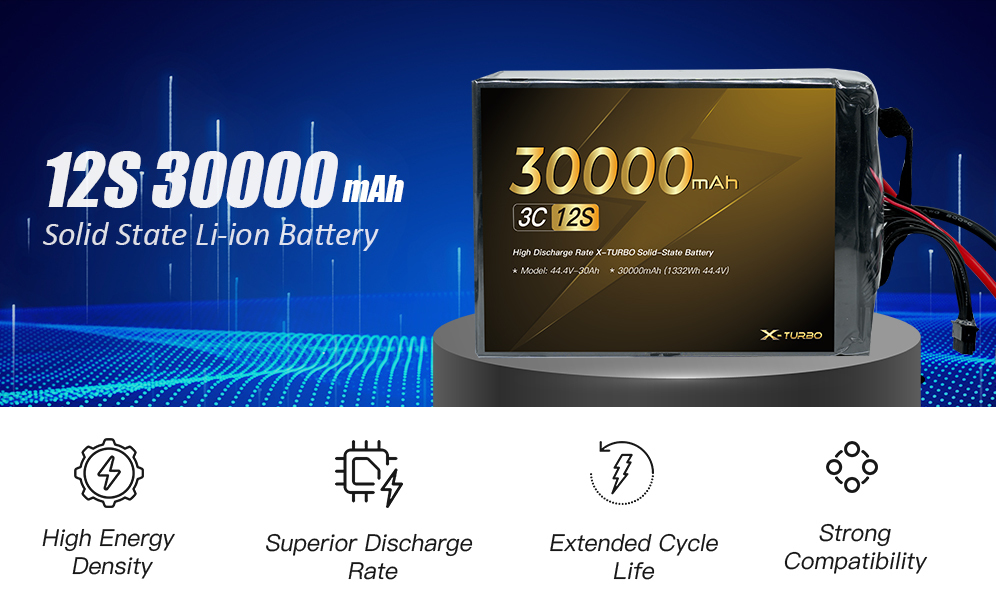 Configured with a 12S cell count, 30000mAh capacity, and high energy density, the XTurbo battery offers a lightweight yet durable power solution for drone operations—particularly suited for long-range aerial missions. With an extended cycle life of up to 800 cycles, it ensures not just a single-use advantage but a lasting investment in reliable and consistent performance.