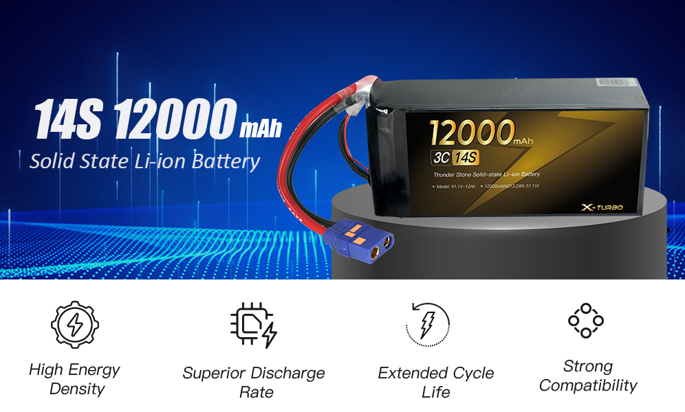 Configured with a 14S cell count, 12000mAh capacity, and high energy density, the XTurbo battery offers a lightweight yet durable power solution for drone operations—particularly suited for long-range aerial missions. With an extended cycle life of up to 500 cycles, it ensures not just a single-use advantage but a lasting investment in reliable and consistent performance.
