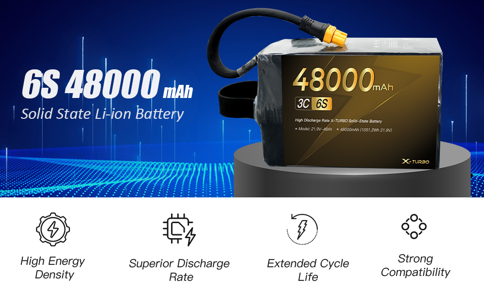 Configured with a 6S cell count, 48000mAh capacity, and high energy density, the XTurbo battery offers a lightweight yet durable power solution for drone operations—particularly suited for long-range aerial missions. With an extended cycle life of up to 500 cycles, it ensures not just a single-use advantage but a lasting investment in reliable and consistent performance.