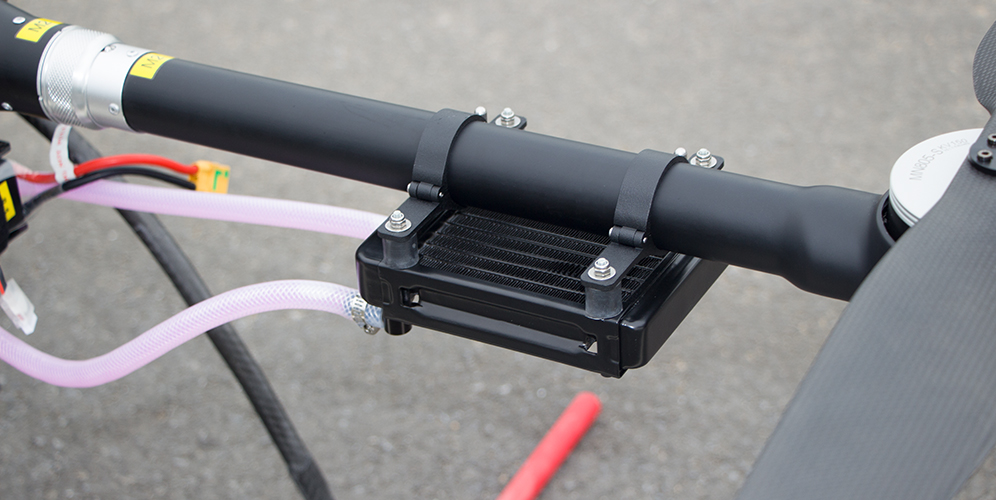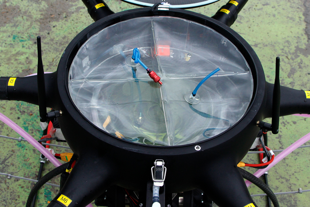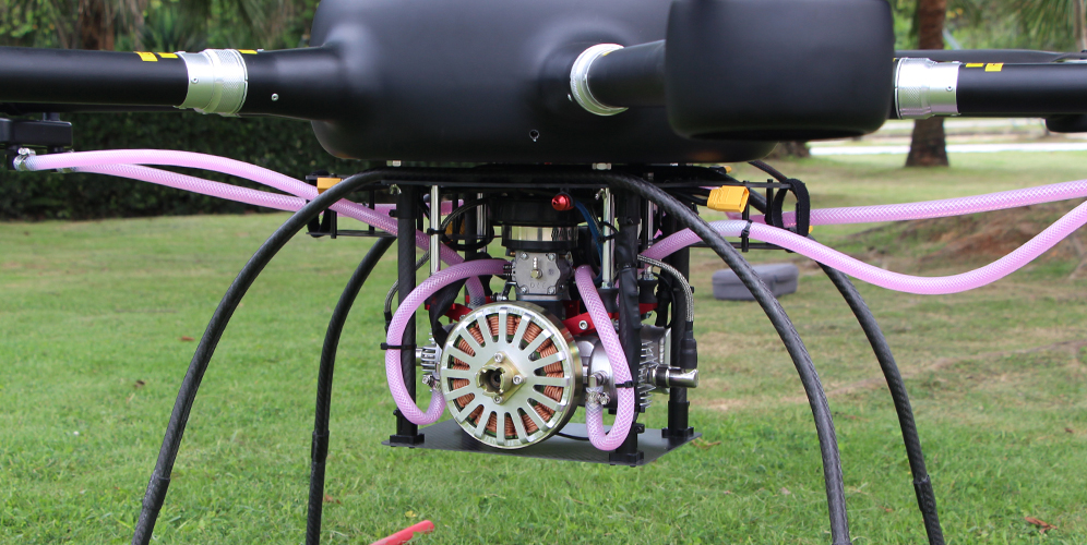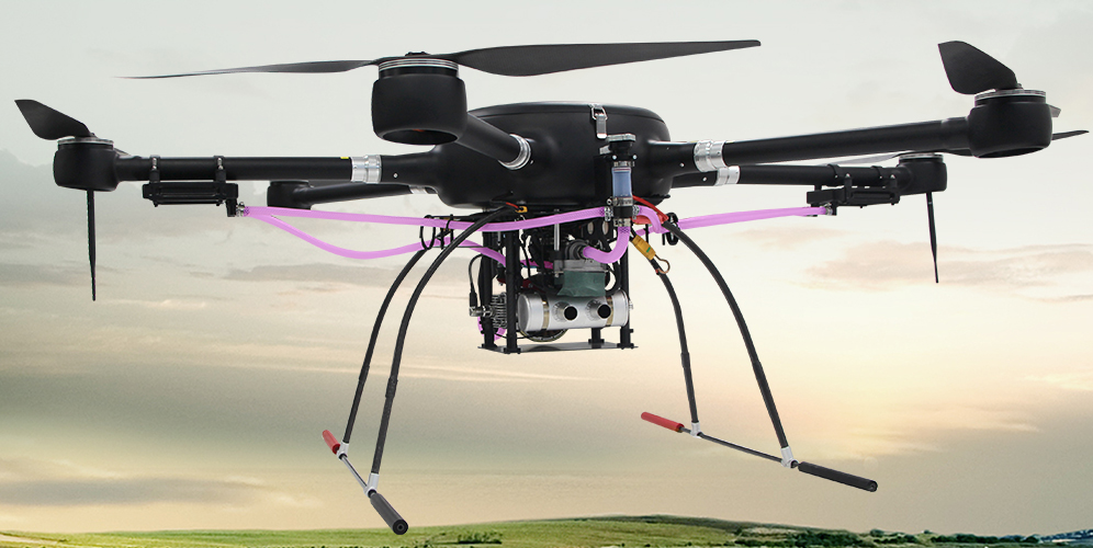 The fuel tank of the hybrid hexacopter supports max. 9-liter gasoline.